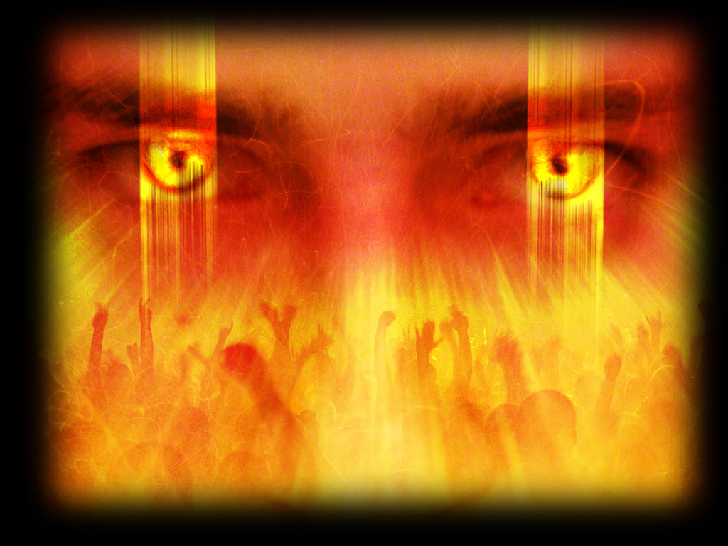 B) QUE TIENE OJOS COMO LLAMA DE FUEGO